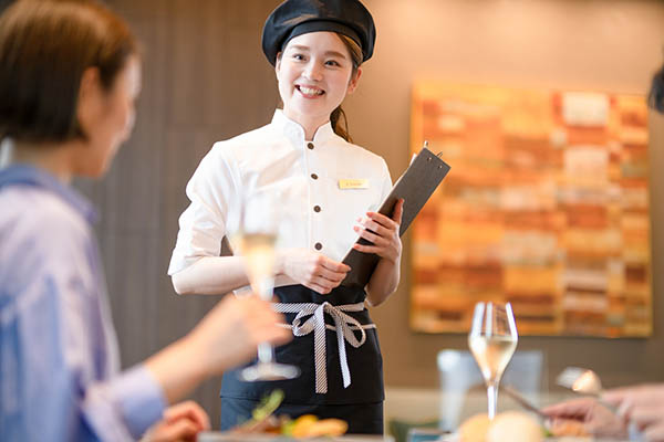- 朝食、レストラン、バーでの案内、会話、提供、提案、余韻づくり